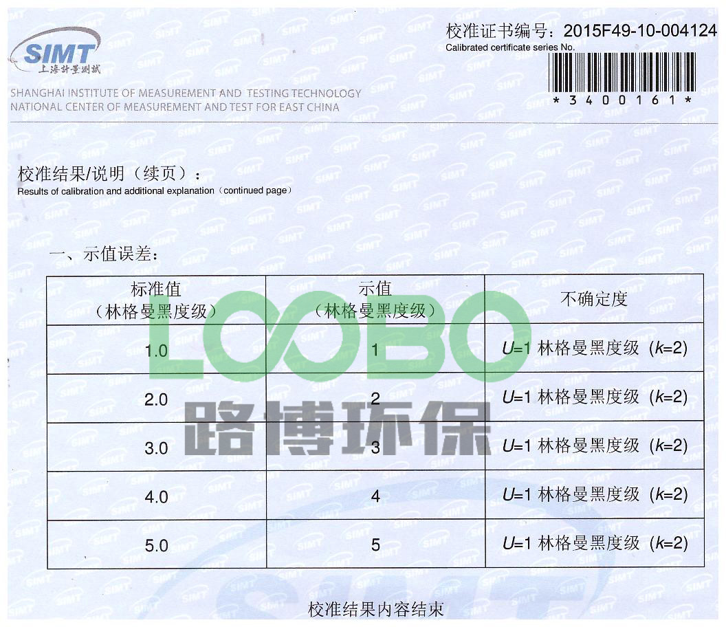路博林格曼黑度望遠鏡通過上海華東計量院的證書