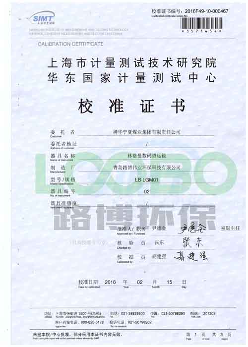 路博生產的LB系列林格曼測煙望遠鏡通過上海市華東計量研究院的計量,望廣大客戶放心購買使用!