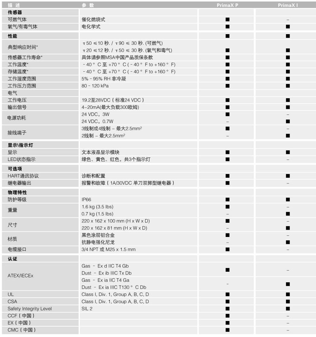 PrimaX 產(chǎn)品可以檢測多達22種氣體,包括可燃氣、氧氣、硫化氫、一氧化碳、二氧化硫、氨氣、NO2、氫氣等。其中可燃性氣體檢測只適用于PrimaX P隔爆型產(chǎn)品。