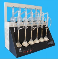 本儀器是根據實驗室蒸餾預處理操作規程,集恒溫加熱、蒸餾終點自動控制、冷卻水循環于一體的新型智能蒸餾處理裝置。該儀器具有控溫、自動避免倒吸、加熱均勻、不會暴沸、智能終點控制等功能。使用方便,節能環保。經過計量認證實驗室蒸餾回收率比對驗證,結果準確可靠,回收率達95%以上。